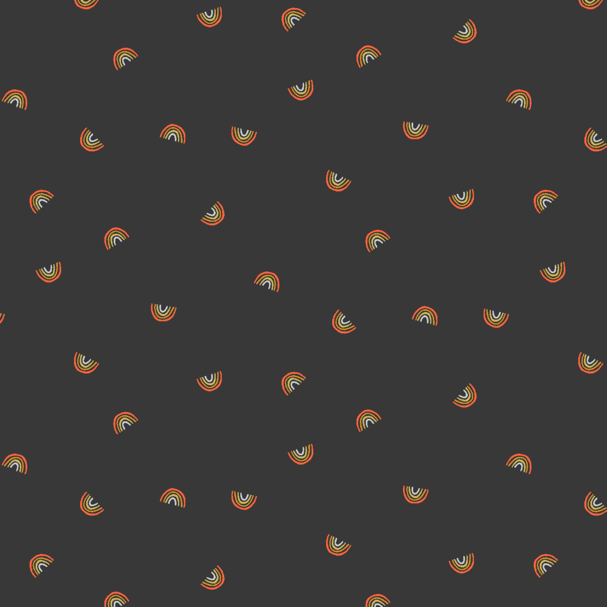 Un tissu sur fond noir avec des arcs en ciels multicolores.