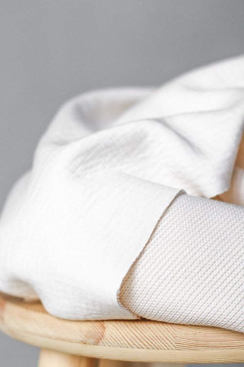 Un sweat maille tricot très original de couleur crème  avec une texture double face : un jersey très doux d’un côté et une texture en tricot côtelé de l’autre … Cette double texture empêche le boulochage et la déformation au lavage…  Parfait pour coudre le sweat Chamonix d’Augustine & Balthazar.